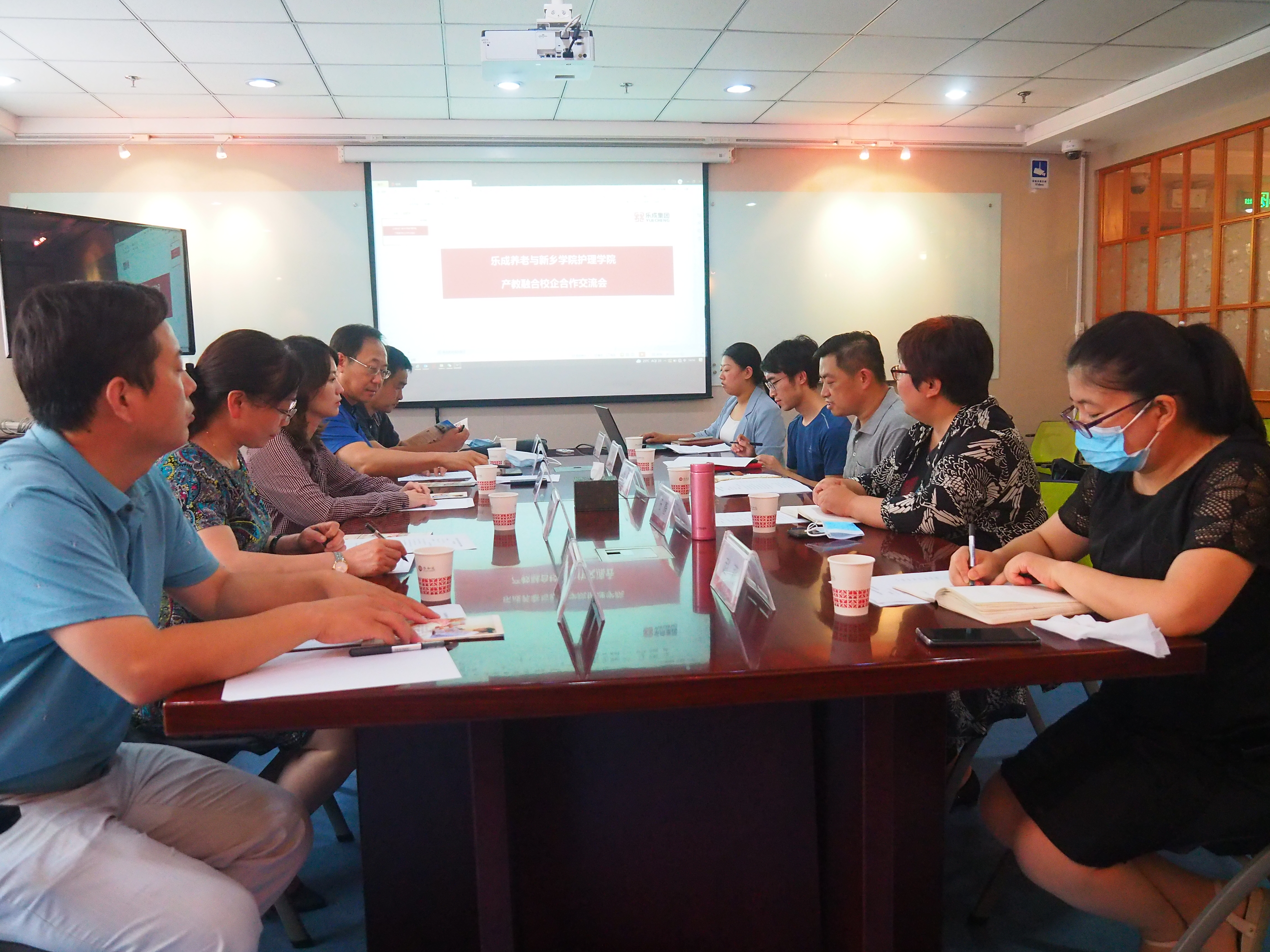 7月15日下午,考察团到达北京乐成集团,乐成集团恭和苑养老机构管理公司副总经理徐晴、北京市养老服务职业技能培训学校校长石静等人员陪同考察。乐成集团旗下乐成养老是国内最早研究中国养老市场、论证中国社会化养老模式、从事专业养老服务的民营企业之一。乐成养老关注社区医疗、养老护理人才培训等多个产业领域,居国内领先地位。考察团参观后进行座谈。在座谈中,双方就养老服务管理专业实践环节设置、学生实习和就业等方面展开深入讨论,并在产业学院的合作模式和内容、双师型教师队伍建设上达成了共识。