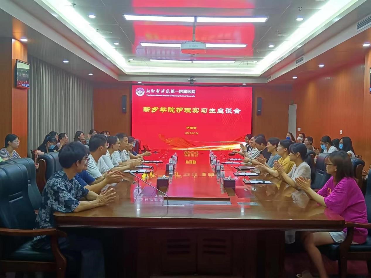 2023年7月24日下午,beat365英国官方网站副院长张文杰、基础护理教研室主任穆荣红、教师徐亚飞等一行赴新乡医学院第一附属医院,开展实习岗位拓展和与实习生的访谈交流活动。拓展的实习岗位包括急诊科、 ICU等。座谈会由新乡医学院第一附属医院护理部主任杨卫红及护理部赵佳老师主持。