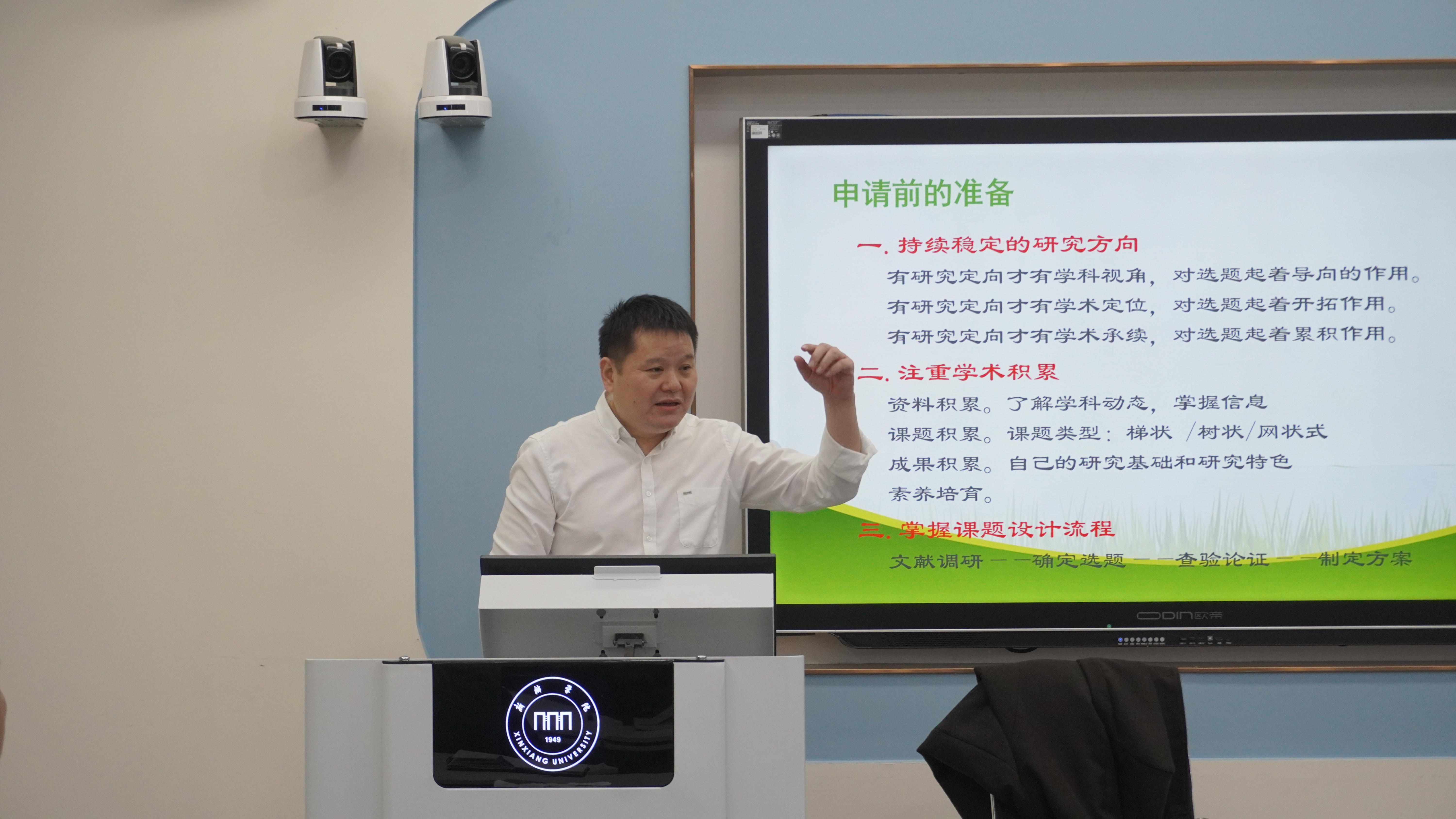 程瑜以《人文护理跨学科选题及申请书撰写》为题,从课题申请前的准备、选题、申请书的撰写、有关经验等四个方面进行详细阐述。他讲道,需从持续稳定的研究方向、注重学术积累、掌握课题设计流程三个方面做好项目申报前的准备;好的选题需具备科学性的内核、创新性的灵魂、需求性的方向、可行性的基础;课题申请书的撰写要突出亮点、突出主题,集中研究目标,注重细节。最后,程瑜表示,从具体的研究中提升到政策的层面,加入社会科学理论视角对项目申报具有积极意义。提问环节,参会教师就如何开展跨学科研究、通过什么途径拓展社科类知识体系等问题与程瑜教授进行了互动交流。