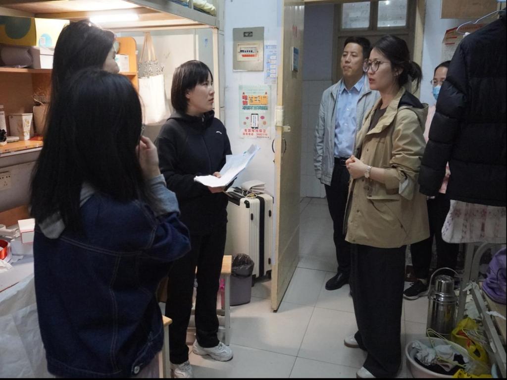 学院领导一行人细致入微地检查了每一间宿舍的消防设施是否完备、用电是否规范、环境卫生是否达标,用实际行动诠释“安全第一”的原则。张翊书记在走访中特别强调:“安全是幸福的基石,每位同学都是校园安全的守护者,希望大家时刻保持警觉,共同维护我们温馨和谐的家。”