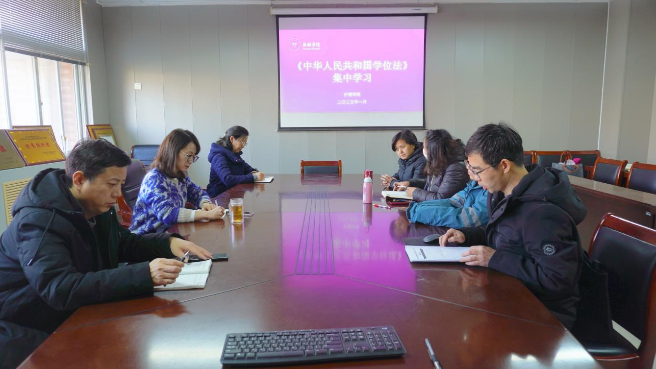 1月8日,为做好《中华人民共和国学位法》(以下简称《学位法》)学习宣传与贯彻落实工作,按照学校统一部署,beat365英国官方网站开展了《学位法》集中学习活动。beat365英国官方网站党总支书记张翊、副院长张文杰、教科研秘书贝家涛及各教研室主任共同参加了学习活动。