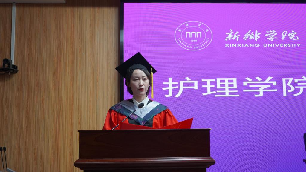 毕业生代表闵子墨回顾求学时光时,深情引用医学生誓言“健康所系,性命相托”,承诺在未来护理工作与学术深造中践行南丁格尔精神,并对母校培养表达感恩之情。教师代表韩江红以“用生命守护生命”为主题,寄语毕业生永葆四个职业品格:保持终身学习的专业精神、坚守仁爱奉献的价值追求、锻造逆境成长的意志品质、传递温暖向善的人文关怀。