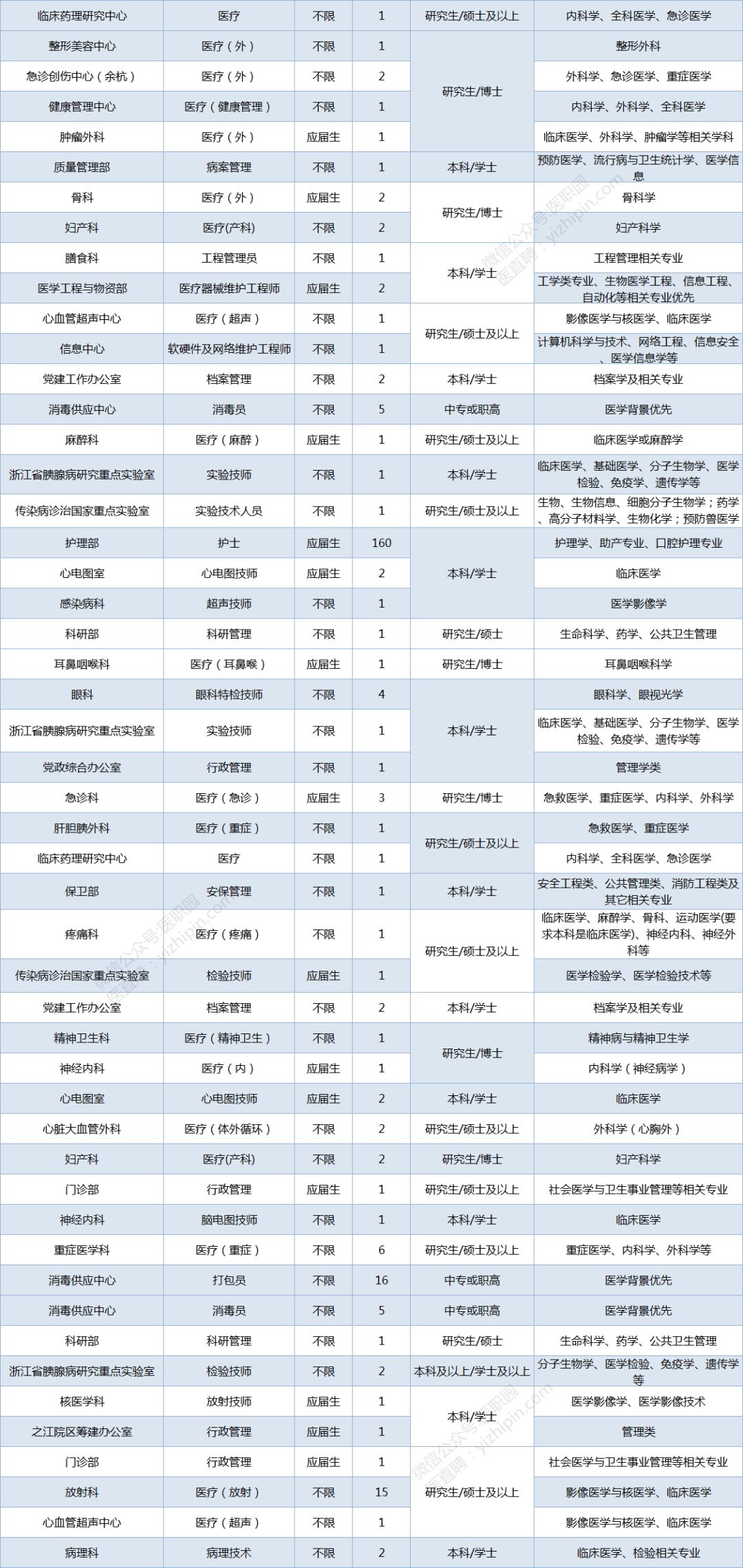 专科起,补招624人,浙江大学医学院附属第一医院2020年第二批招聘预公告
