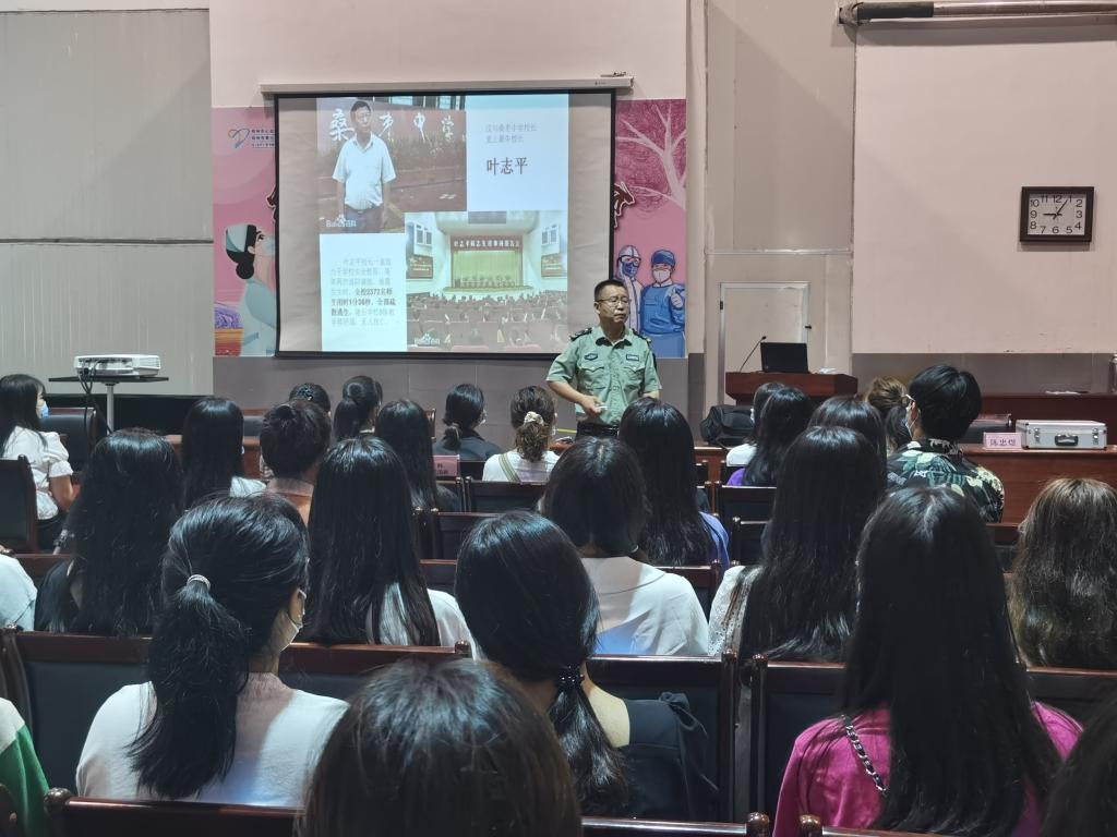 实习带队老师李德力在与技能培训科护士长禹继敏进行工作接洽后,对同学们讲述了医院护理部以及学校对同学们实习期间的要求,并详细讲述了即将岗前考核的双人心肺复苏的操作流程。