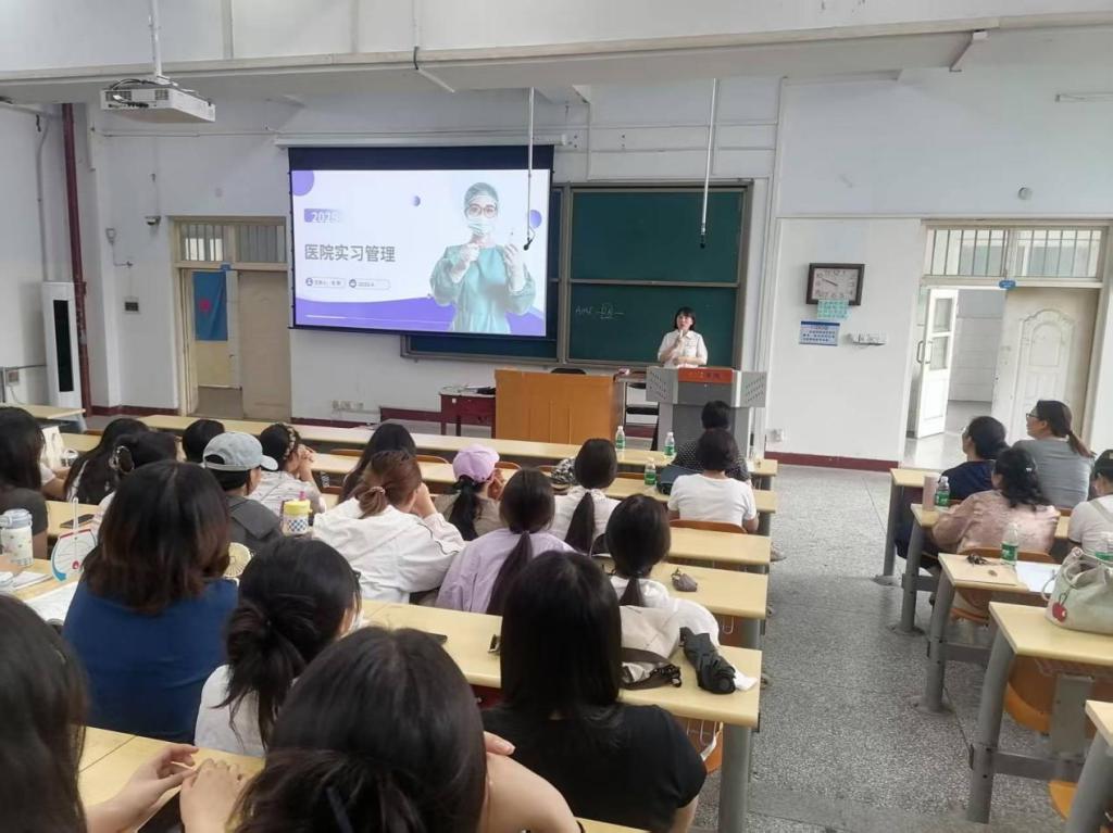 会上,张文杰以《规范实习流程》为题,讲解了实习安排、返校要求,重点解读了实习实训管理制度;穆荣红、平菊梅与实习指导教师徐艳则分别围绕“从课堂到病房的跨越式成长”、“安全·规范·融入”、“筑牢安全防线”作专题发言,从专升本复习与就业指导、实习行为要求与沟通建议、生活安全与医疗暴露的防范、实习手册填写等方面为学生开展具体指导。张金华在总结发言中强调了临床实习的意义和专升本的重要性,并结合学习态度向全体实习生提出殷切期望。随后,实习指导教师与学生的开展了个性化指导。