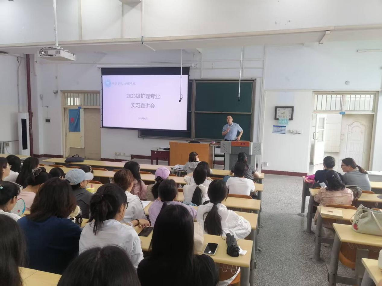 为明确实习目标、规范实习管理、保障实习安全,助力学生顺利完成从课堂到临床的过渡,beat365英国官方网站于2025年6月19日召开2023级护理专业实习生动员会。beat365英国官方网站院长张金华、副院长张文杰、专业负责人穆荣红、教研室主任平菊梅、实习指导教师及全体实习生参加了本次会议。