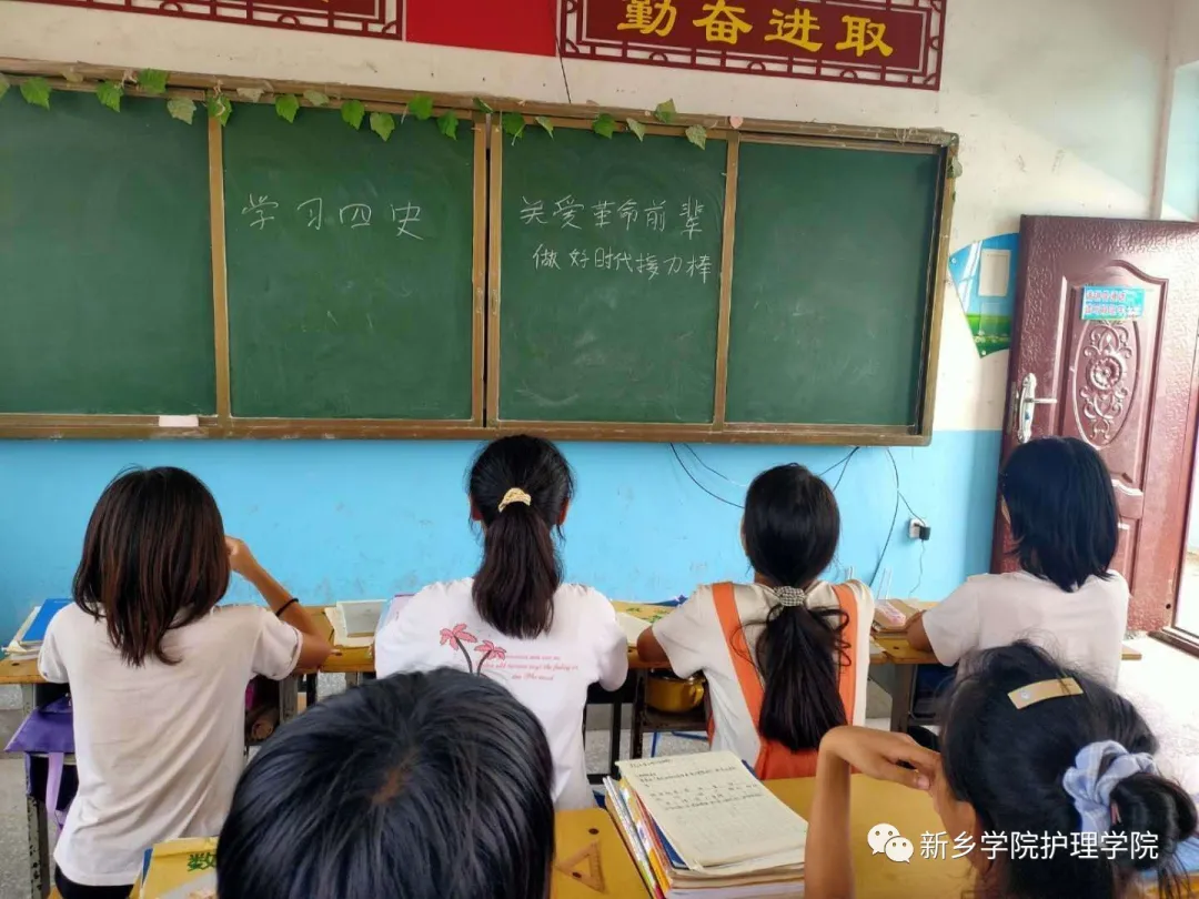 走访途中,我们结合所学专业知识,向老党员们普及防疫小知识及夏日养生常识,并亲自向他们示范七步洗手法的正确步骤。同时,我们还来到了周口建设街小学,将走访学习到的"四史"讲给小学生。希望他们可以从这节课的学习中,树立爱国情怀,日后努力学习,成为国之栋梁。