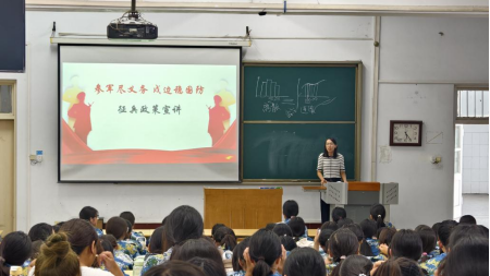 为了响应国家对于大学生国防教育与参军的号召,鼓励学生积极投入国防建设,beat365于9月13日下午在A01教学楼开展2024级新生国防教育及征兵入伍政策宣讲,本次活动由二十一营教官牛奕琳主讲。