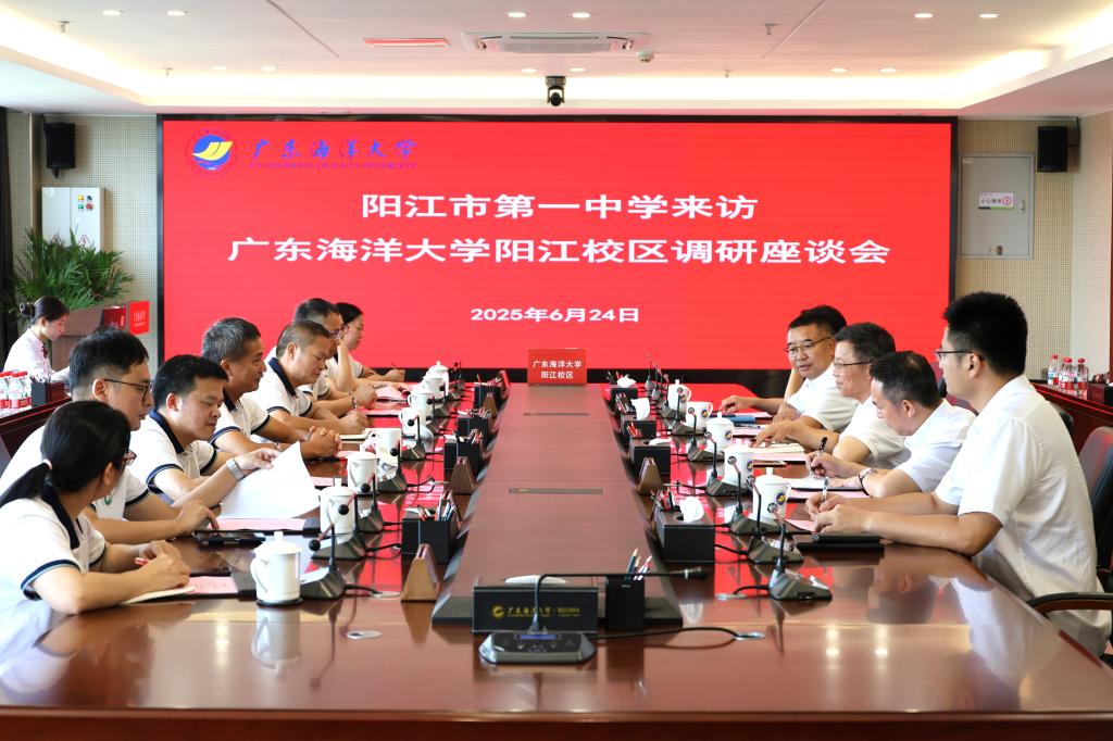 6月24日上午,阳江市第一中学校长梁峻荣一行来阳江校区调研交流。校区党委副书记丁永成、麦冬宁,校区管理办公室副主任、综合事务部部长张家荣,校区管理办公室副主任、教学科研部部长白浚宇,资产财务部部长郭恩松参加活动。