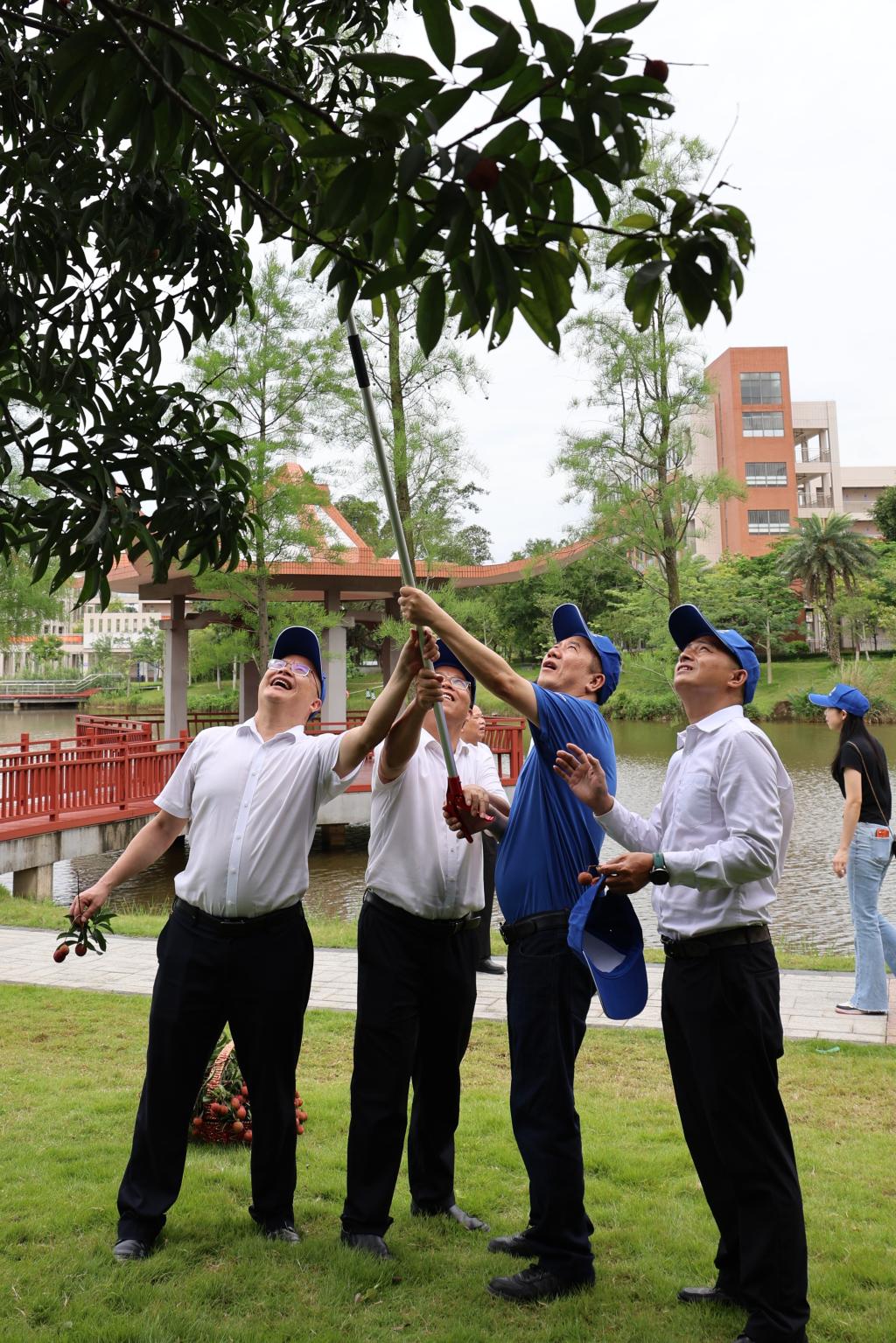 仪式结束后,荔枝采摘活动欢乐开启。丰收的甜蜜、同窗的情谊、师生的融洽、对母校的祝福,都融入在这鲜甜的荔枝之中,现场气氛温馨而热烈。大家纷纷表示,这份甜蜜是迎接校庆最美好的滋味之一。